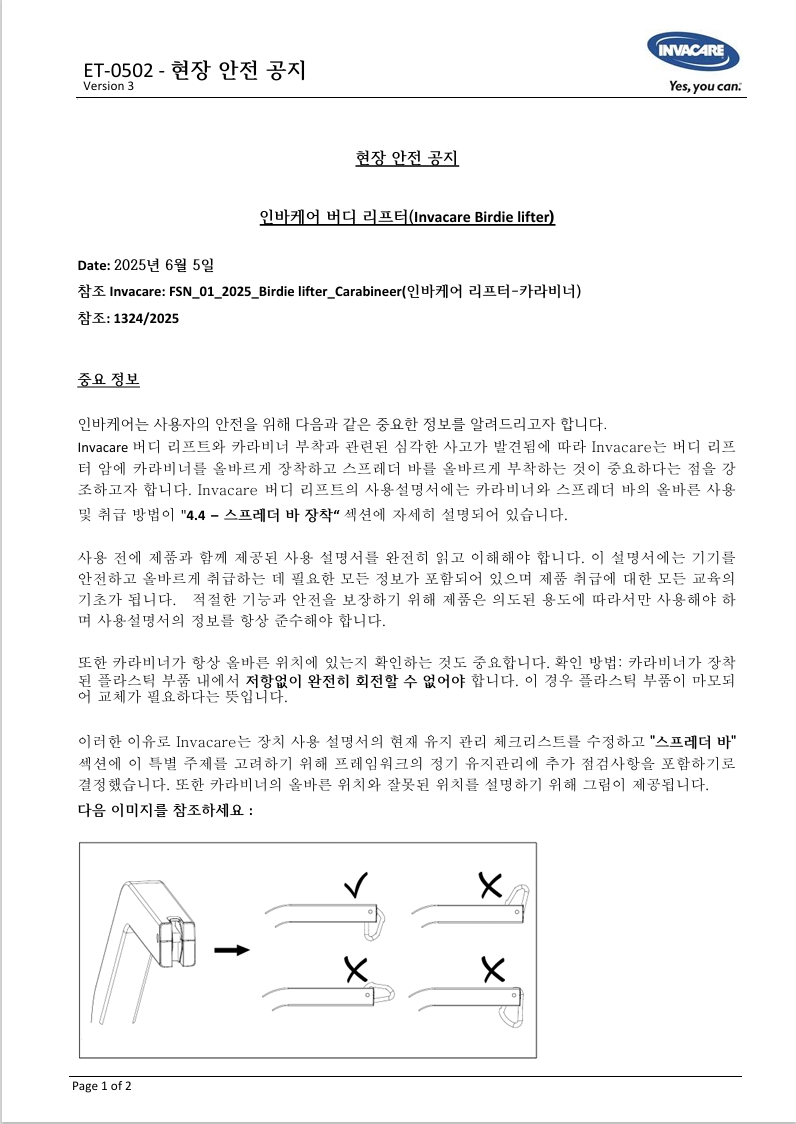 Invacare Birdie lifter °ü·Ã ¾ÈÀü °øÁö»çÇ×