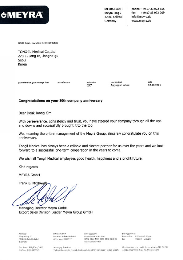 30th-Anniversary Congratulation letters from partners