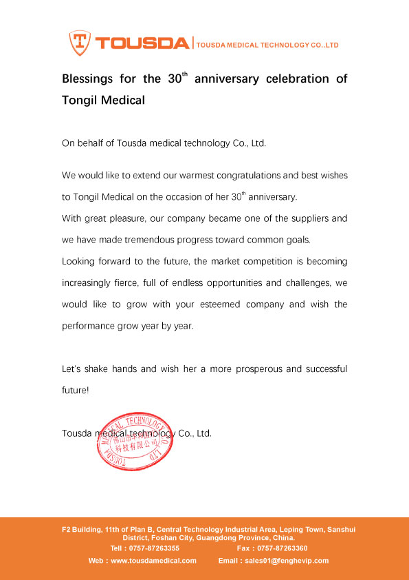 A congratulatory message from Tousda