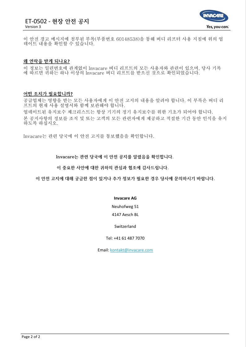 Invacare Birdie lifter °ü·Ã ¾ÈÀü °øÁö»çÇ×